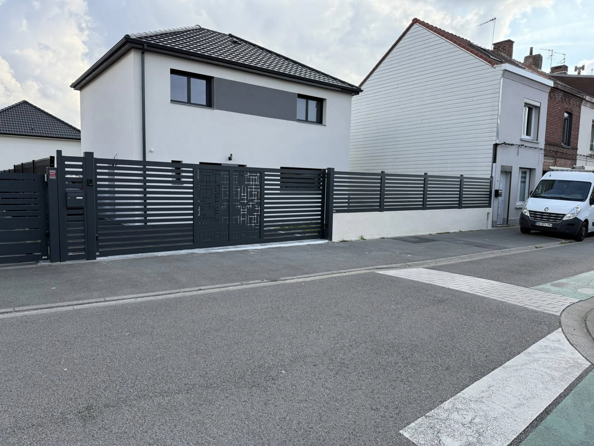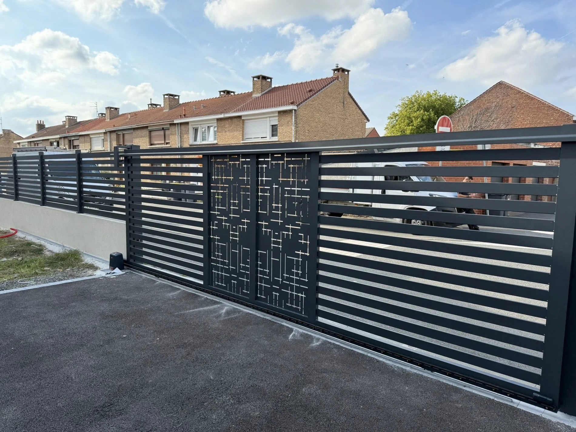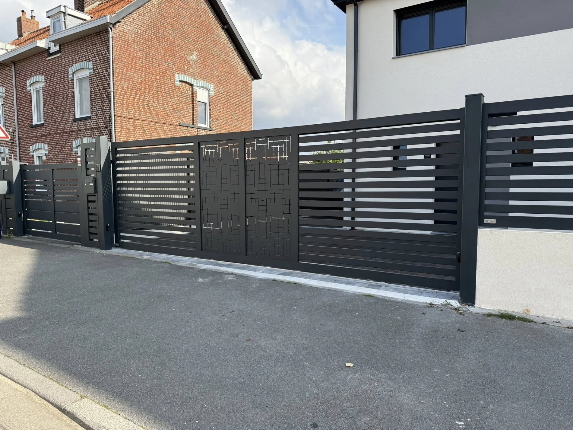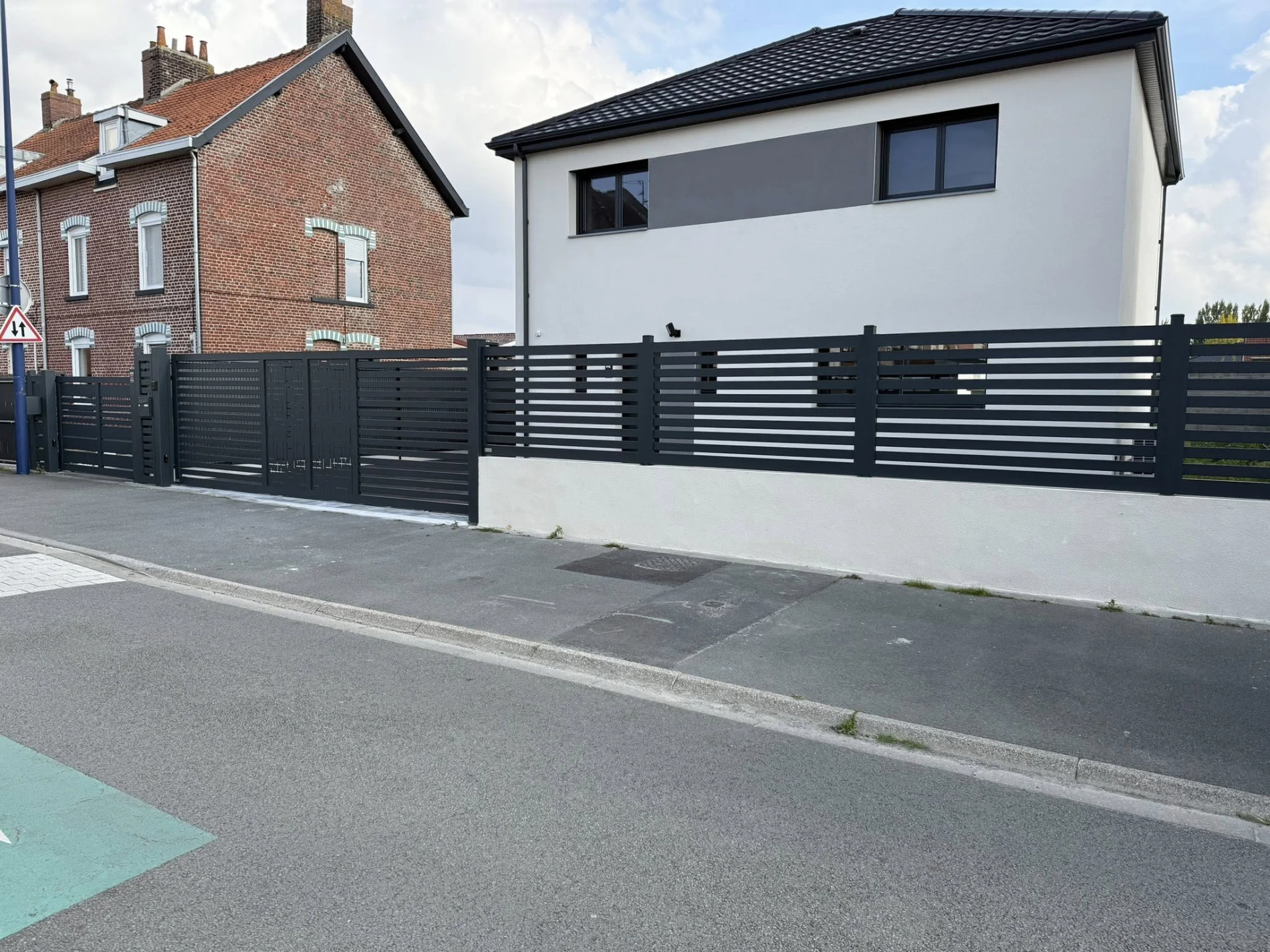 ⭐️ Magnifique installation d’un portail coulissant motorisé, d’un totem et d’une clôture en aluminium sur muret sur la commune de PERENCHIES dans la métropole lilloise🇫🇷